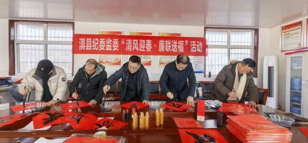 红纸铺展,翰墨飘香。2月4日上午,淇县庙口镇下曹村,这个县纪委监委对口帮扶的村庄暖意融融,一场由县纪委监委与县书法家协会联合举办的“清风迎春·廉联送福”活动在这里热烈举行。