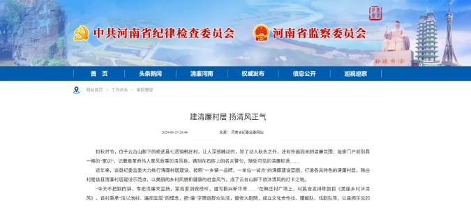 近年来,该县纪委监委大力推行清廉村居建设,按照“一乡镇一品牌,一单位一试点”的清廉建设蓝图,打造各具特色的清廉村居。韩庄村是该县清廉村居建设示范点,以美丽的乡村风貌和健康的社会风气,成了云台山脚下旅沐清风的打卡之地。