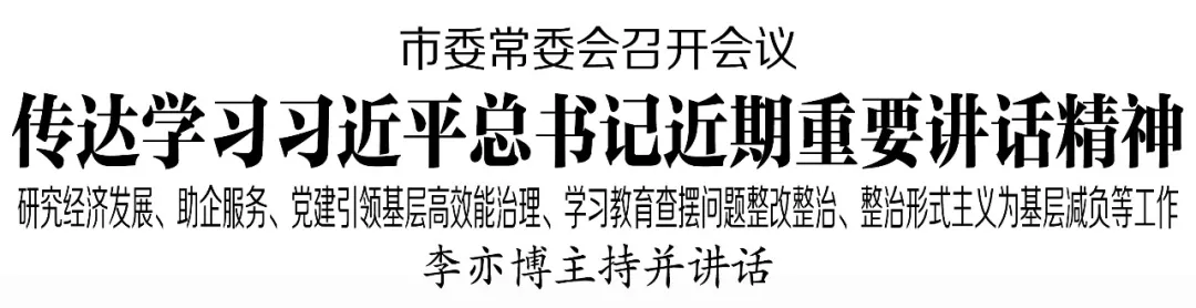 8月8日,市委常委会召开会议,传达学习习近平总书记在7月30日中共中央政治局会议上的重要讲话精神,研究经济发展、助企服务、党建引领基层高效能治理、学习教育查摆问题整改整治、整治形式主义为基层减负等工作。市委书记李亦博主持并讲话。