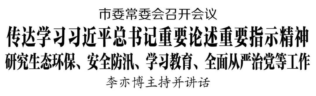 8月15日,市委常委会召开会议,传达学习习近平总书记关于河南工作的部分重要论述和近期重要指示精神,研究生态环保、安全防汛、学习教育、全面从严治党等工作。市委书记李亦博主持并讲话。