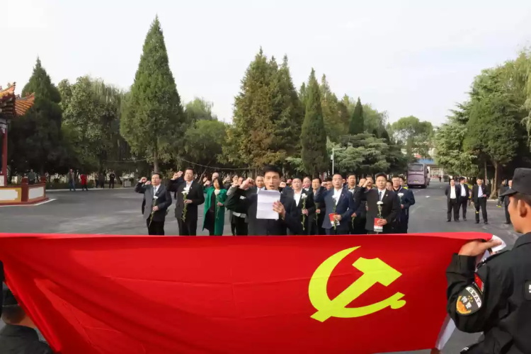当日下午,市纪委理论学习中心组成员及机关、市委巡察机构县处级以上党员干部前往杞县水东烈士陵园,缅怀为新中国诞生而浴血奋战、勇敢牺牲的烈士。全体人员列队进入,在纪念碑前的广场上齐唱《中华人民共和国国歌》以慰藉地下英魂,并由市纪委副书记、市监委副主任侯豪、王俊生代表市纪委监委在纪念碑前敬献“中共开封市纪律检查委员会”“开封市监察委员会”两个花篮,怀着无比的敬意,同志们在纪念碑下集体默哀,悼念长眠于地下的烈士英雄。随后,在市纪委副书记、市监委副主任侯豪带领下,同志们举起右拳,面对党旗重温入党誓词。