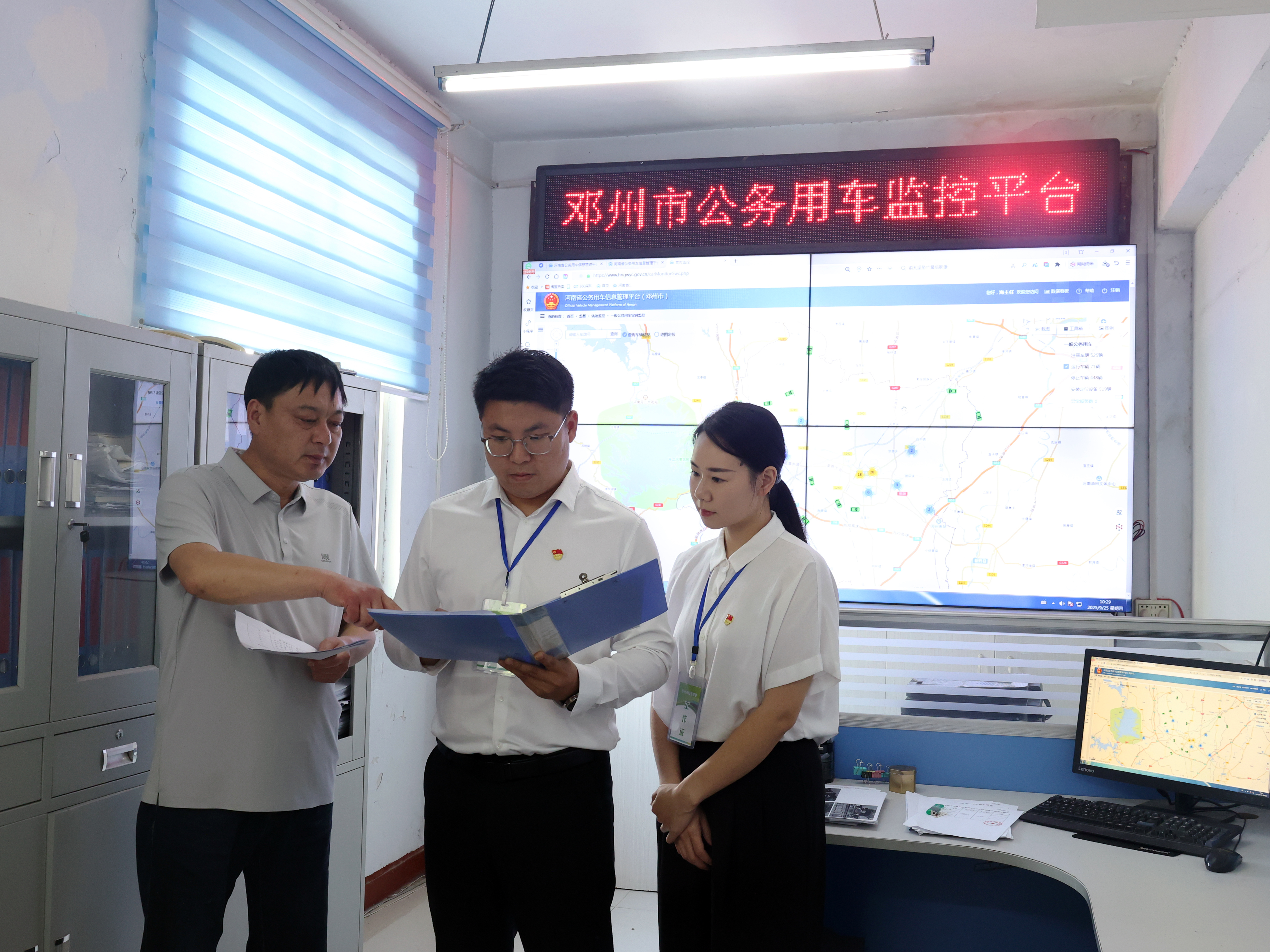 图为邓州市纪委监委检查组运用公务用车监控平台开展智慧化监督。