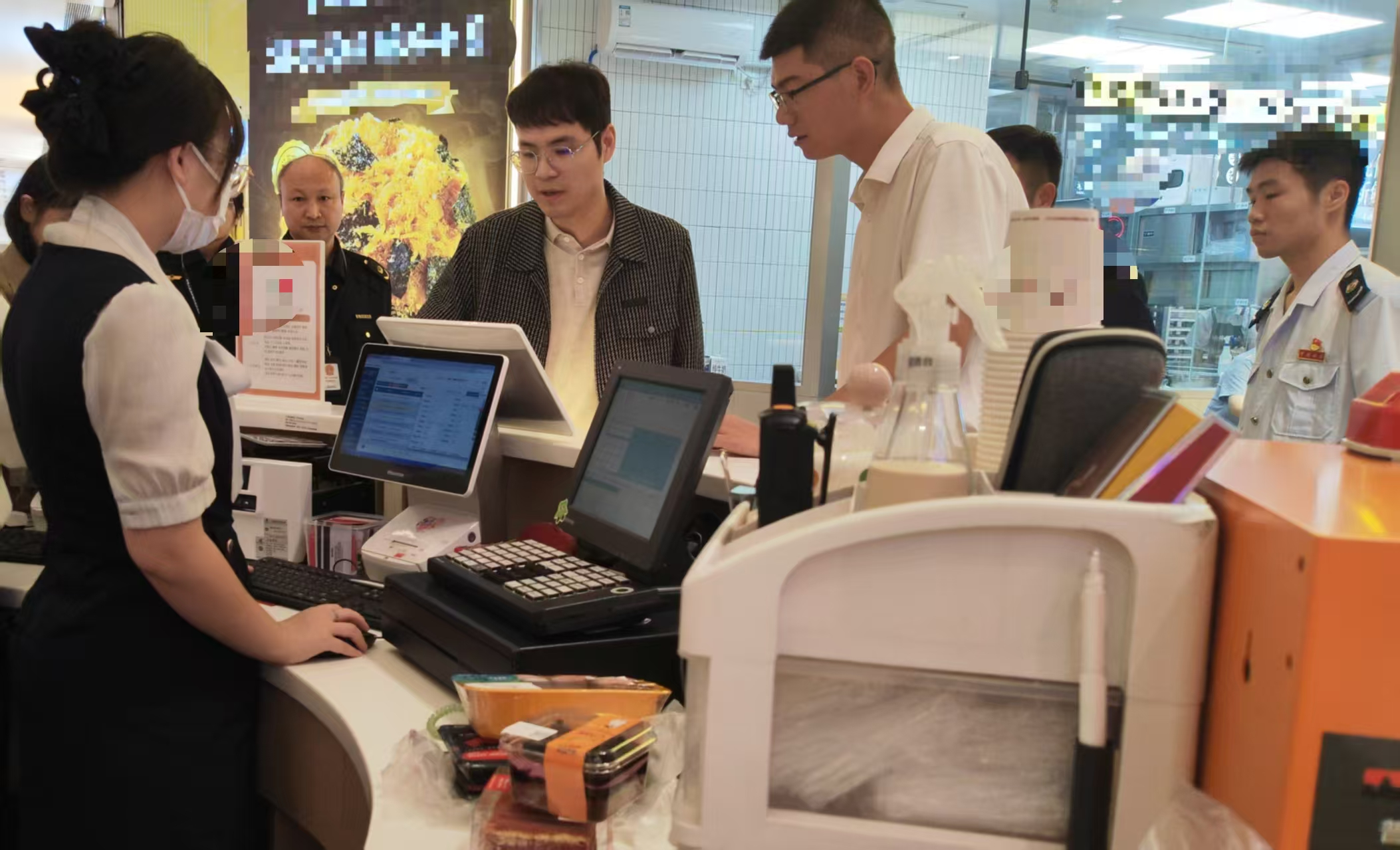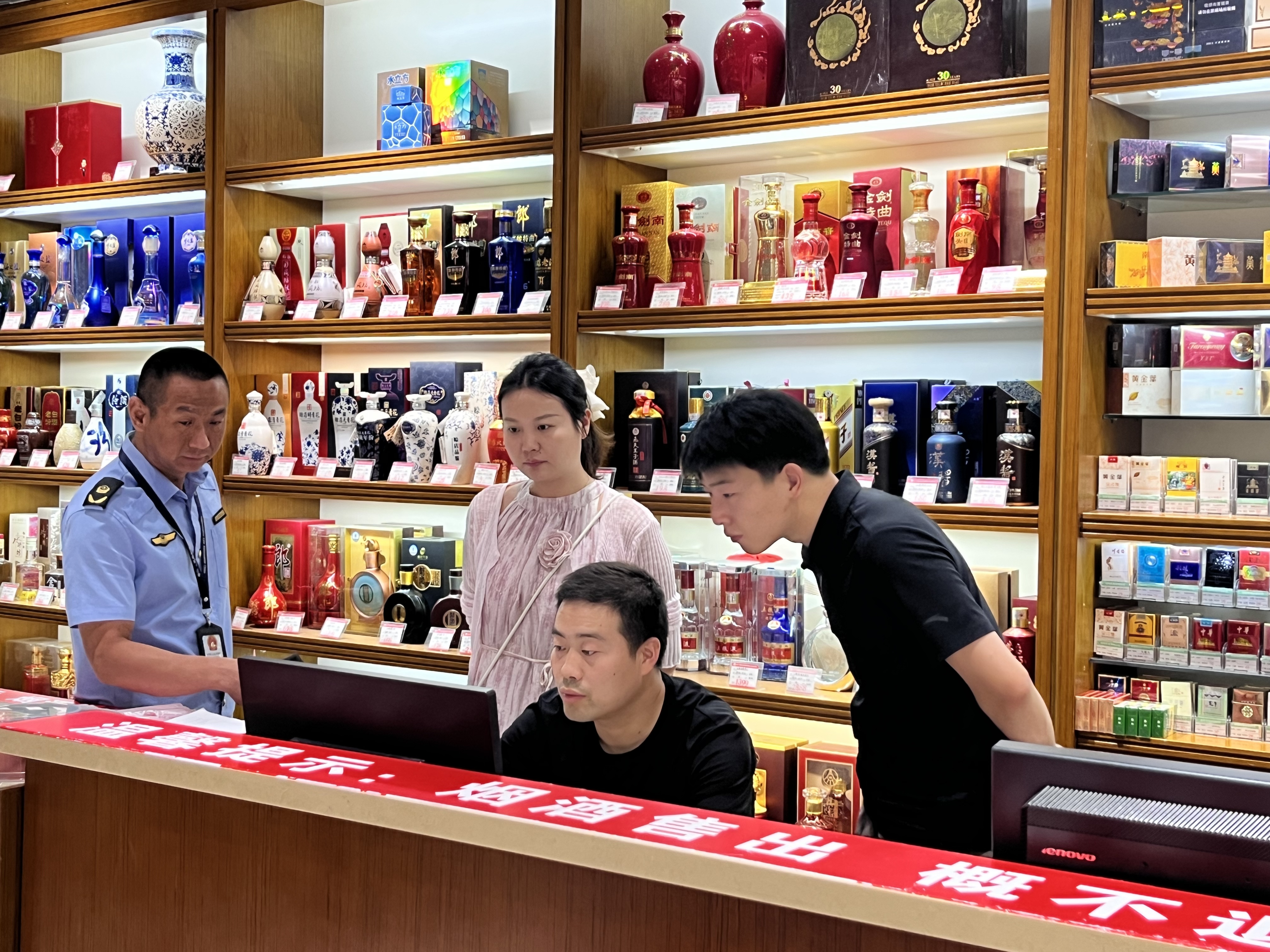 图为南阳市纪委监委第二检查组会同市场监管、税务等部门工作人员开展联合检查。