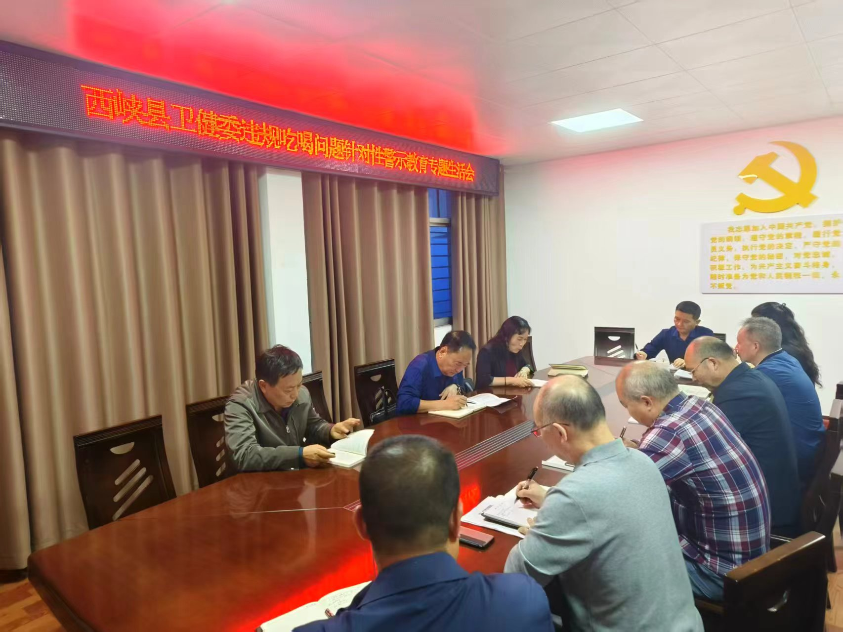 图为西峡县纪委监委驻县卫健委纪检监察组会同驻在单位党组召开节前警示教育专题生活会。