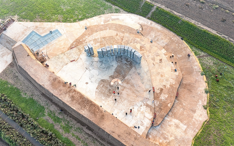 陶寺遗址位于山西省襄汾县陶寺村,是我国新石器时代晚期的大型聚落遗址,距今约4300年至3900年。图为近日,游客在陶寺遗址观象台观看拍摄日出。 图片来源:视觉中国