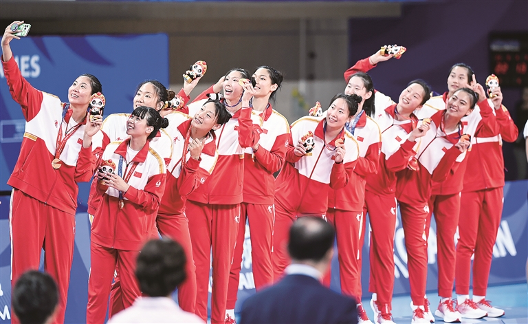 结束了最后一场比赛,意大利女子水球队的埃莱娜·阿尔塔穆拉赶紧拍照留念,记录自己在水球场馆的最后一天。“这里的设施很棒,气氛很好,比我预想的要棒很多。”阿尔塔穆拉说。