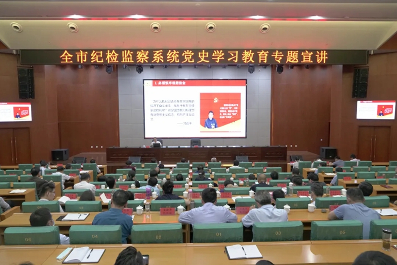 赵晓磊就进一步抓好党史学习教育强调,要提高政治站位,在深入学习上下功夫。全市各级纪检监察机关要充分利用第一议题、理论学习中心组学习、“三会一课”等形式加强学习,促进学深悟透,进一步提高政治判断力、政治领悟力、政治执行力。要坚持舆论引导,在宣传发动上下功夫。要以本次集中宣讲活动为契机,依托新媒体开展特色鲜明、形式多样、丰富多彩的学习宣传,引导掌握核心要义、精神实质,不断把党史学习教育引向深入。要抓好贯彻落实,在结合实际上下功夫。要切实做到理论联系实际,各部门领导同志要开动脑筋,认真思考研究,把主动融入新发展格局作为谋划推进全市纪检监察工作高质量发展的方位和坐标,扛起历史使命和时代重任。