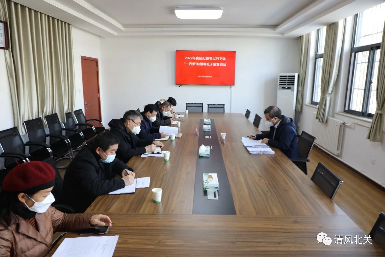 北关区纪委监委组织开展纪委书记同下级“一把手”和领导班子监督谈心谈话活动,对谈话发现的问题,现场提出明确具体的整改要求,推动各单位“一把手”和领导班子切实履行好“一岗双责”,管好自己的“责任田”。图为北关区纪委书记同下级“一把手”和领导班子开展监督谈话。(袁亚杰 摄)