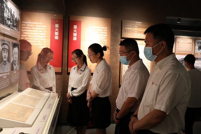 郑州市二七区纪委监委组织机关干部参观河南省博物院党史主题教育展览,通过对珍贵档案文献、实物及影像资料的学习,对中国共产党团结带领中国人民不畏千难万险、克服重重困难、取得一个又一个伟大胜利的奋斗历史有了更深的理解和感悟。(郑州市二七区纪委监委 汤会曾 摄)