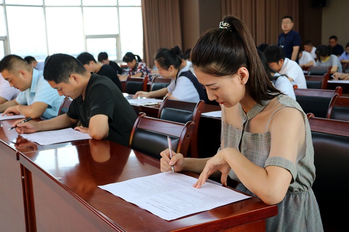 鹿邑县纪委监委通过“以考促学”的方式定期对全县纪检监察干部进行业务知识测试,以压力促动力,督促每一位纪检监察干部在日常工作中不断“充电”,持续提升业务水平和履职能力。(鹿邑县纪委监委 李乐乐 摄)