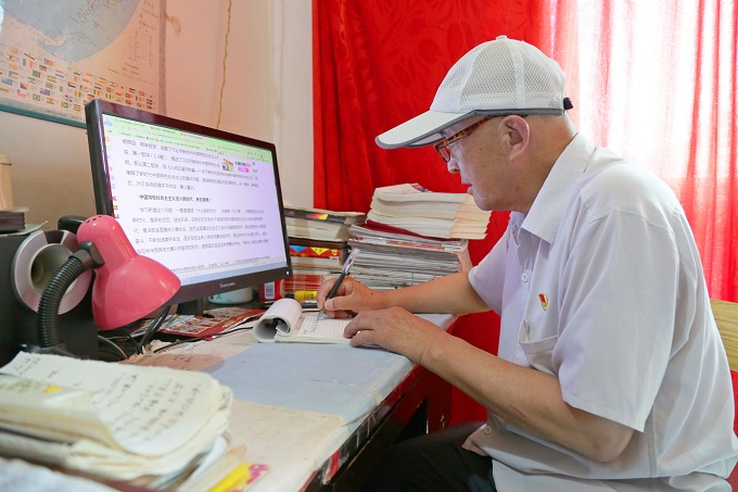 离岗不离党,退休不褪色。卢氏县纪委监委退休老党员楚中理,每天坚持学习党的理论、党中央决策部署和重要讲话精神等,十几年如一日,记录笔记62本40余万字,以此表达对党的热爱和忠诚。(卢氏县纪委监委 薛向浯 摄)