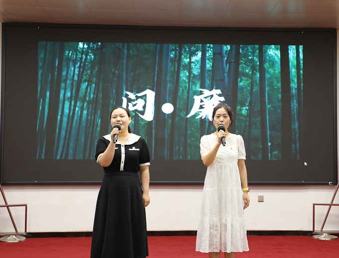 登封市纪委监委通过举办主题演讲、组织参观红色教育基地、开展廉洁家书征集等系列活动,持续放大廉洁文化传播效应,着力实现“文化润廉、教育促廉、家庭助廉”。图为该市纪检监察干部在“清风润初心 清廉铸担当”主题演讲比赛中,现场演绎原创作品《问・廉》,以生动表达助推廉洁意识扎根心田。(登封市纪委监委 康春艳 摄)