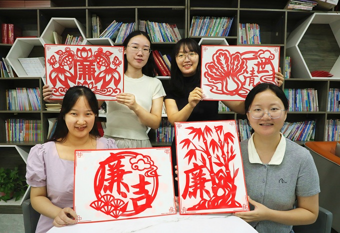 商水县纪委监委深入挖掘传统艺术中的廉洁元素,组织开展“巧手裁廉纸 清风润初心”剪纸活动,党员干部以剪纸为载体,创作莲花、竹子等寓意清廉的作品,在潜移默化中强化廉洁自律意识,推动廉洁文化建设融入日常。图为活动现场制作的廉洁主题剪纸佳作。(商水县纪委监委 童威威 摄)