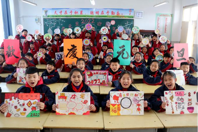 在元旦佳节来临之际,鹿邑县第二实验小学的孩子们用画笔描绘节日,用色彩挥洒激情,迎接元旦的到来。(鹿邑县纪委监委 李乐乐 摄)