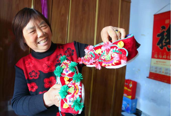 虎年春节临近,宝丰县赵庄镇手工艺人用千针万线绣作一双双美丽的“虎头鞋”,给大家送上虎年的美好祝愿。(宝丰县纪委监委 王双正 摄)