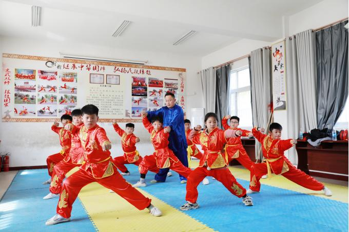 “洪拳”文化送祝福,浓浓年味“最中国”。元旦前夕,台前县马楼镇裴城寺村“大洪拳”二十九代传承者张传举正指导孩子们加紧排练元旦演出节目,把传统文化“搬上”节日舞台,营造浓厚节日氛围。(台前县纪委监委 张乐斌 摄)