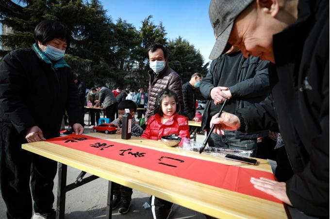 新密市长宁街社区组织书法爱好者开展“迎新年写春联、情暖社区”活动,一行行俊逸的书法,一句句喜庆的言语,为新的一年带来别样的祝福。(新密市纪委监委 王洪涛 摄)