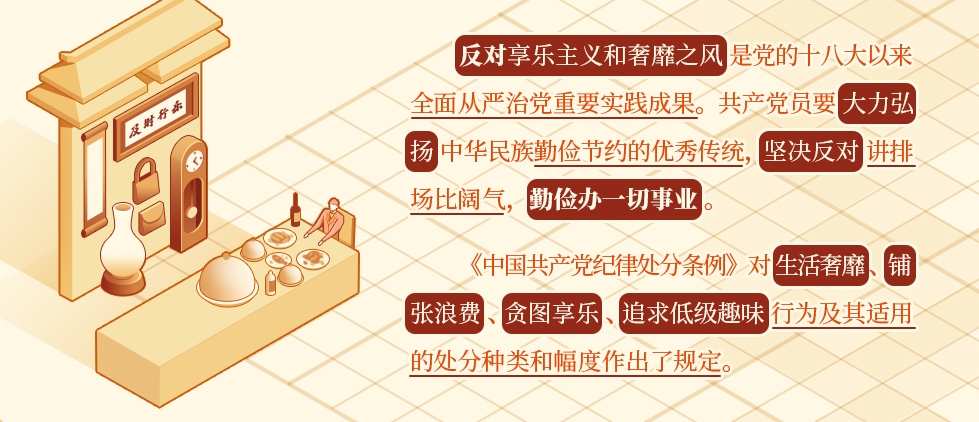 《中国共产党纪律处分条例》第一百五十条规定,生活奢靡、铺张浪费、贪图享乐、追求低级趣味,造成不良影响的,给予警告或者严重警告处分;情节严重的,给予撤销党内职务处分。