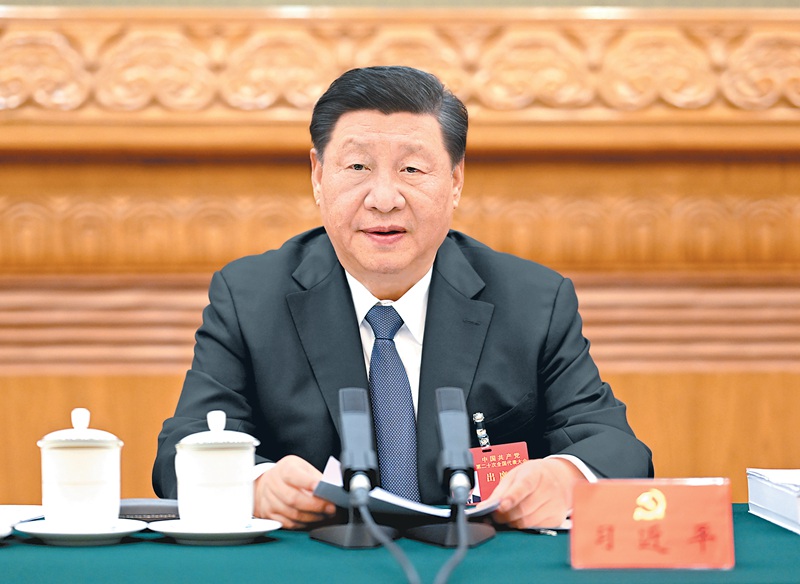 10月18日,中国共产党第二十次全国代表大会主席团在北京人民大会堂举行第二次会议。习近平同志主持会议。新华社记者 李学仁 摄