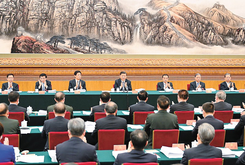 10月18日,中国共产党第二十次全国代表大会主席团在北京人民大会堂举行第二次会议。习近平、李克强、栗战书、汪洋、王沪宁、赵乐际、韩正等出席会议。新华社记者 李学仁 摄