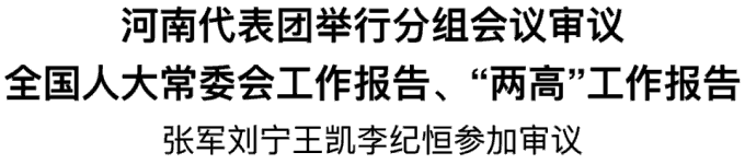 3月8日下午,十四届全国人大三次会议河南代表团举行分组会议,审议全国人大常委会工作报告和最高人民法院工作报告、最高人民检察院工作报告。最高人民法院院长张军,省委书记、省人大常委会主任、河南代表团团长刘宁,省长、河南代表团副团长王凯,十四届全国人大农业与农村委员会副主任委员李纪恒参加审议。