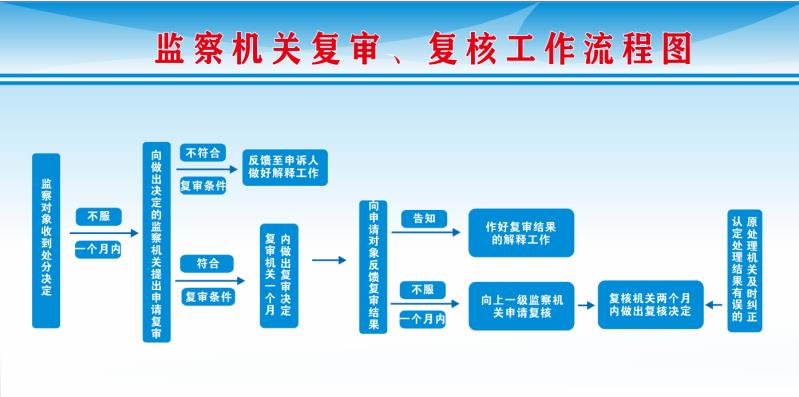 监察对象对监察机关作出的涉及本人的处理决定不服的,可以在收到处理决定之日起一个月内,向作出决定的监察机关申请复审,复审机关应当在一个月内作出复审决定;监察对象对复审决定仍不服的,可以在收到复审决定之日起一个月内,向上一级监察机关申请复核,复核机关应当在二个月内作出复核决定。复审、复核期间,不停止原处理决定的执行。复核机关经审查,认定处理决定有错误的,原处理机关应当及时予以纠正。