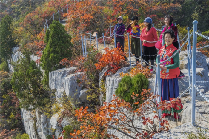 寒露时节,气温持续下降,太行山上已呈现深秋景象,漫山的红叶尽显多彩之秋的魅力。