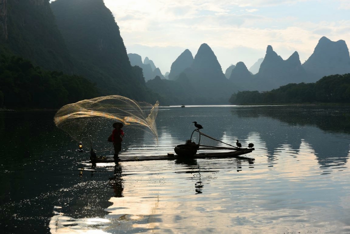 眼下,正是捕鱼的好时节,泛舟轻荡,渔歌晚唱,一幅诗意十足的风景,在群山碧水中水墨呈现。