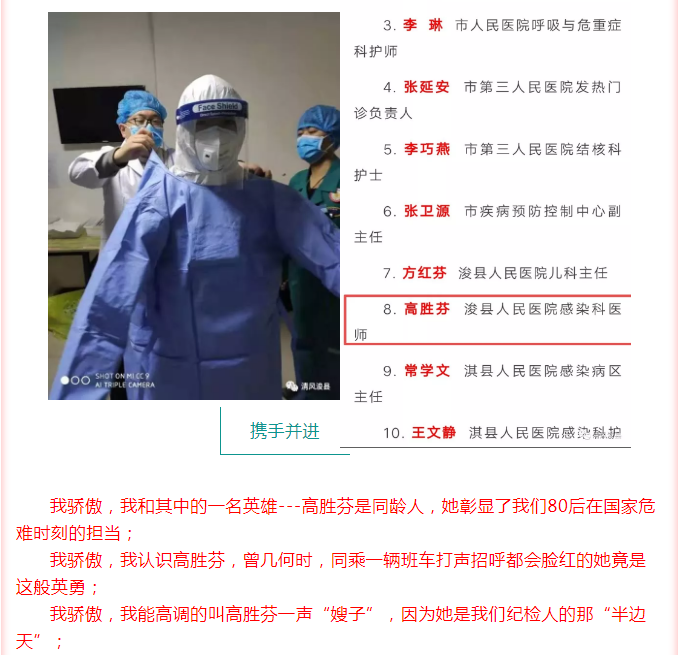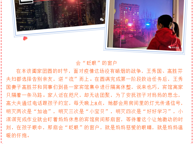 妻子因为在抗击“新冠肺炎”疫情中的突出表现,荣登鹤壁市第二批“疫情防控好人好事”“阻击一线英雄榜”,火线中入了党,战壕中得到了历练;前几天她的副主任医师职称评审也顺利通过,总的来说这一年高兴的事挺多。