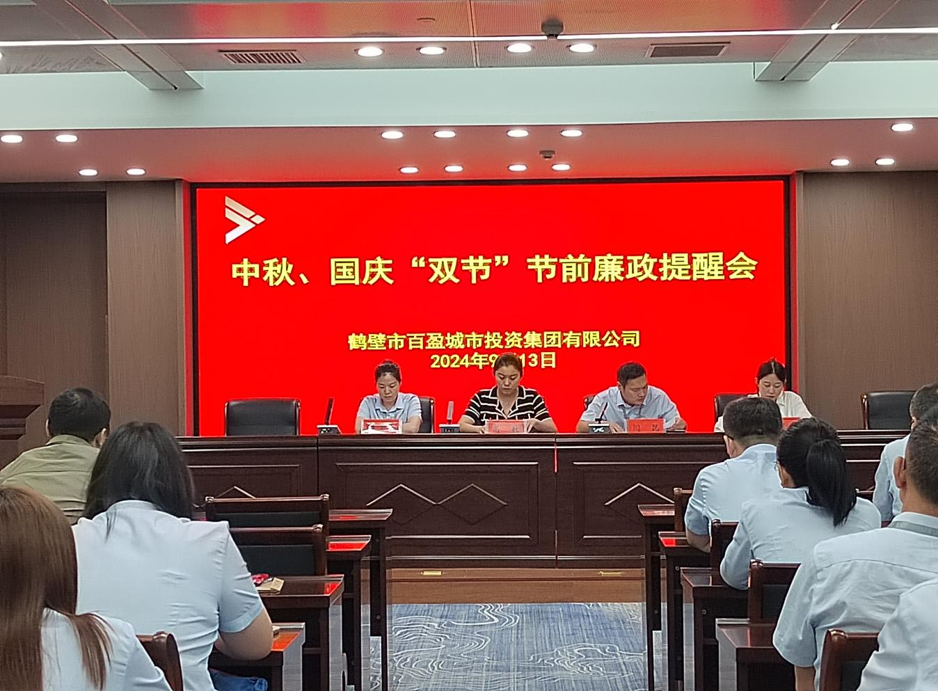 中秋、国庆“双节”将至,为认真贯彻落实中央八项规定精神和上级有关部署要求,9月13日,集团纪委召开节前廉政提醒会,通报相关典型案例,开展集体廉政谈话,进一步增强纪律规矩意识,强化自我约束、严守纪律底线,营造风清气正节日氛围。