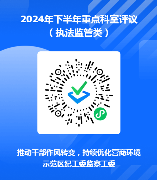 为进一步推动干部作风转变,助力示范区营商环境持续提升,根据《2024年区直单位重点科室评议方案》(济区纪办发〔2024〕14号),现对执法监管、行政审批、综合服务三类区直单位重点科室2024年下半年工作情况开展评议,欢迎社会各界、广大群众积极参与,围绕工作作风、依规履职、政务服务、执法监管、政商关系等方面,对相关科室进行评议。