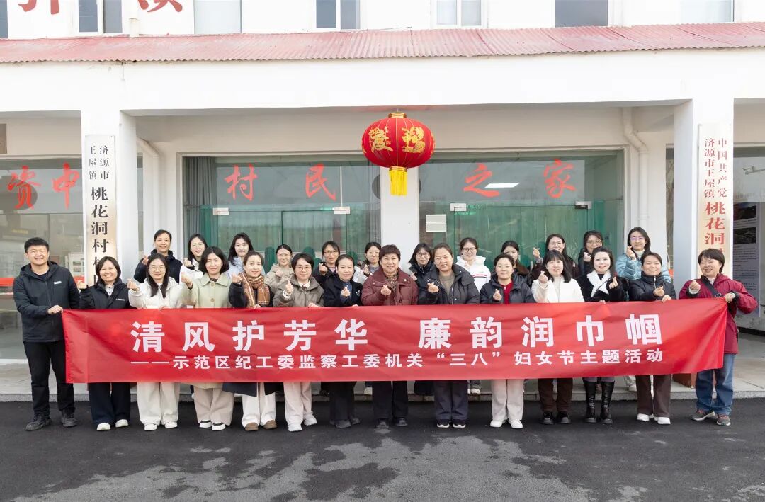 在第116个“三八”国际妇女节来临之际,全体纪检监察女干部来到王屋镇,开展“清风护芳华・廉韵润巾帼”特色党建主题活动。在原庄村,广大纪检监察女干部深入学习党建引领乡村振兴先进经验,实地参观特色产业基地和美丽乡村建设示范点;在桃花洞村,大家参观廉政文化广场,深入了解驻村帮扶情况,并在党建活动基地开展趣味活动,体验汉服文化。