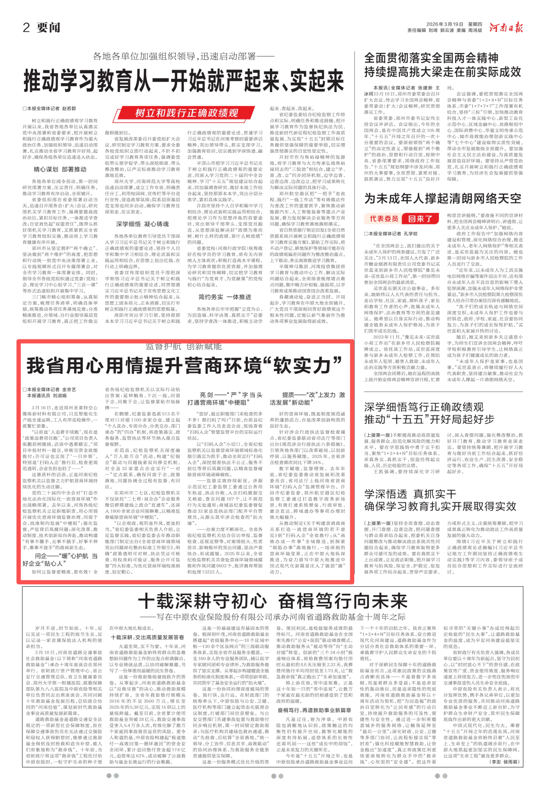 党的二十届四中全会对“打造市场化法治化国际化一流营商环境”作出战略部署。去年以来,河南各级纪检监察机关立足职能职责,用心用情开展优化营商环境监督治理,问需于企,找准制约发展“中梗阻”;强化监督,严惩背后风腐问题;深化改革,推动制度、技术创新双向奔赴,推动构建“有事不撒手、无事不插手、好事不伸手、难事不放手”的政商新生态。