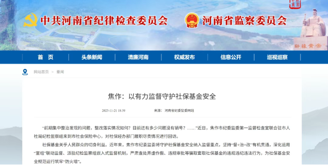 社保基金关乎人民群众的切身利益。近年来,焦作市纪委监委将守护社保基金安全纳入监督重点,坚持“督+治+改”有机贯通,深化运用“室组”联动监督、派驻纪检监察组嵌入式监督机制,严肃查处弄虚作假、违规审批等骗取套取社保基金的违规违纪违法行为,为社保基金安全规范运行筑牢“防火墙”。