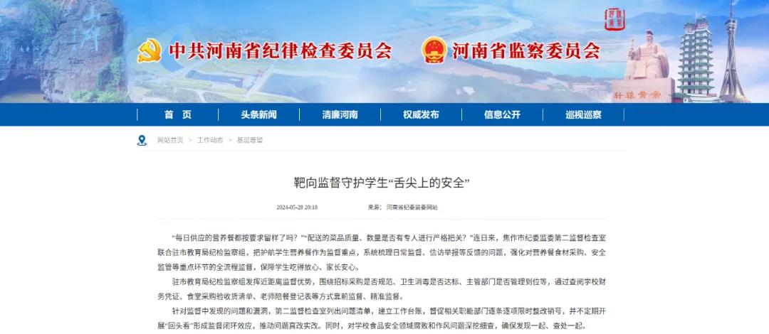 “每日供应的营养餐都按要求留样了吗?”“配送的菜品质量、数量是否有专人进行严格把关?”连日来,焦作市纪委监委第二监督检查室联合驻市教育局纪检监察组,把护航学生营养餐作为监督重点,系统梳理日常监督、信访举报等反馈的问题,强化对营养餐食材采购、安全监管等重点环节的全流程监督,保障学生吃得放心、家长安心。