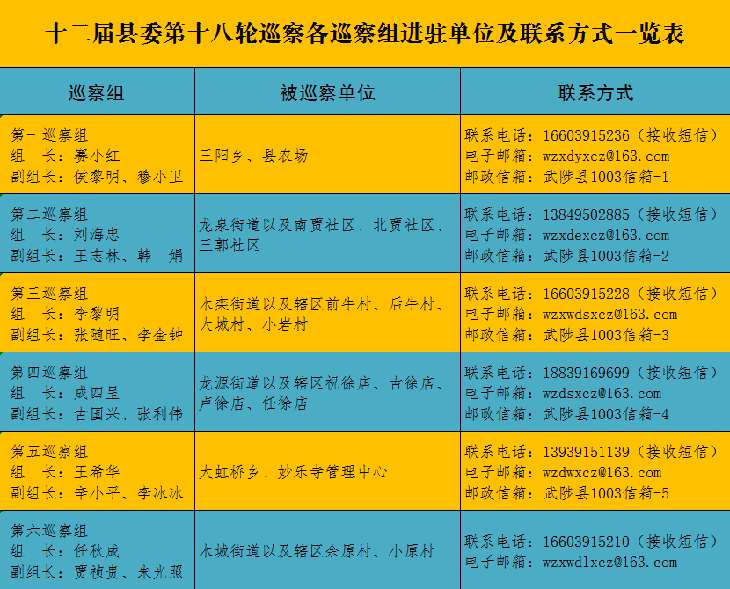 按照县委统一部署,武陟县委组成6个巡察组,从2020年10月12日开始,对木城街道、龙源街道、龙泉街道、木栾街道、三阳乡、大虹桥乡、县农场、妙乐寺管理中心8个单位开展常规巡察,同时,对木城街道的余原村、小原村,龙源街道的祝徐店、古徐店、卢徐店、任徐店,龙泉街道的南贾社区、北贾社区、三郭社区,木栾街道的前牛村、后牛村、大城村、小岩村共13个村(社区)延伸开展乡村振兴专项巡察。