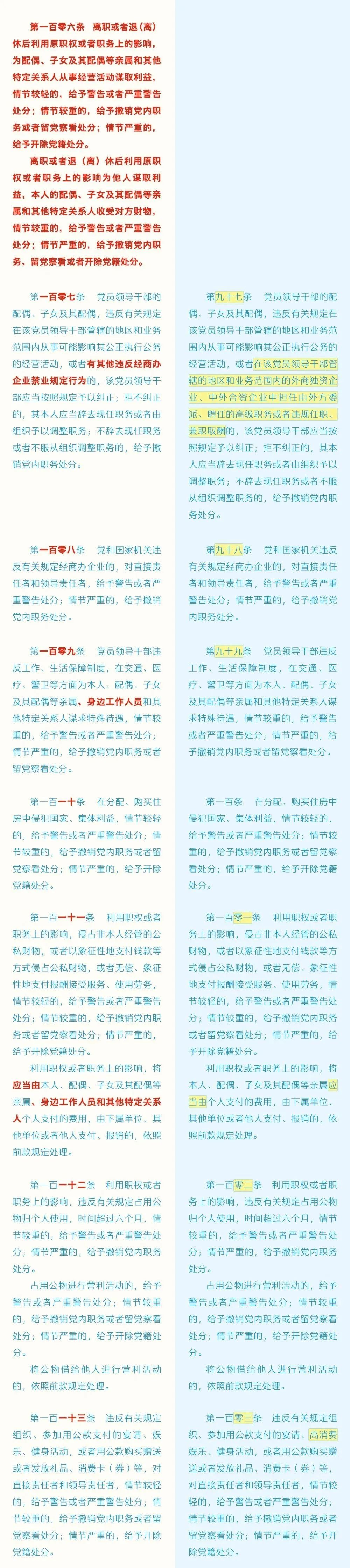 《中国共产党纪律处分条例》修订条文对照表(三)
