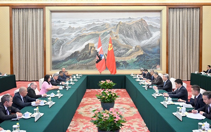 6月12日,中共中央政治局常委、中央纪委书记李希在北京会见由古巴共产党中央政治局委员、阿特米萨省委第一书记马丁内斯率领的古共省市委领导干部考察团。新华社记者 岳月伟 摄
