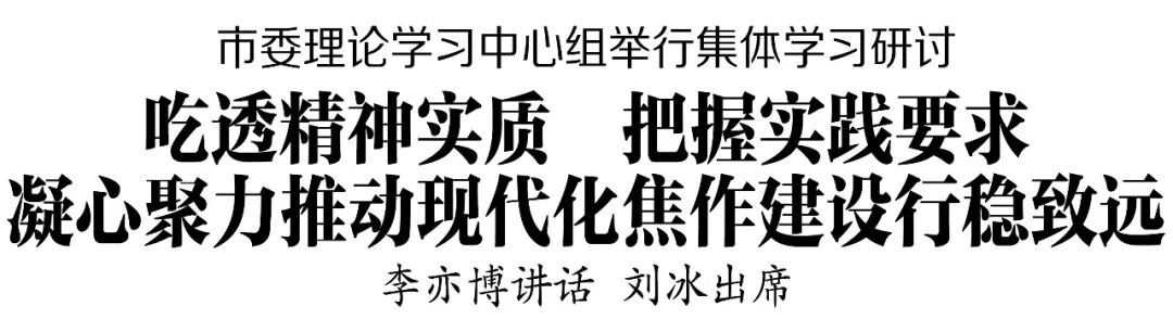 李亦博指出,党的二十届四中全会是在向第二个百年奋斗目标进军的新征程上举行的一次十分重要的会议,充分彰显了我们党对现代化建设规律的深刻把握、破解发展难题的历史主动精神、推进人民共同富裕的使命担当以及持续深化自我革命的历史自觉。全会审议通过的“十五五”规划建议,对“十五五”时期经济社会发展作出顶层设计和战略擘画,必将对党和国家事业发展产生重大而深远的影响。要深刻领悟“两个确立”的决定性意义,坚决做到“两个维护”,切实把思想和行动统一到全会精神上来,增强政治自觉,校准目标方向,增强信心决心,坚定不移沿着习近平总书记指引的方向前进,扎实推动焦作高质量发展和高效能治理,努力在谱写中原大地推进中国式现代化新篇章中奋勇争先、更加出彩。