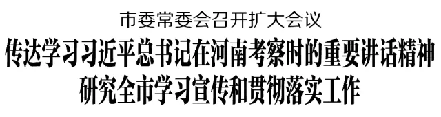 5月23日,市委常委会召开扩大会议,传达学习习近平总书记在河南考察时的重要讲话精神,学习贯彻全省领导干部会议精神,研究全市学习宣传和贯彻落实工作。受市委书记李亦博委托,市委副书记、市长刘冰主持并讲话。