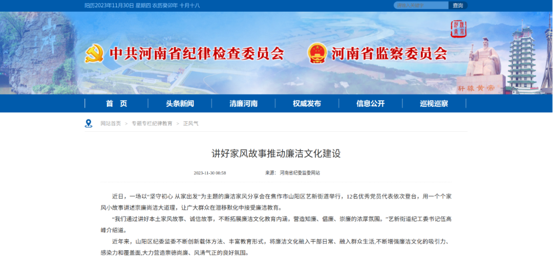 近日,一场以“坚守初心 从家出发”为主题的廉洁家风分享会在焦作市山阳区艺新街道举行,12名优秀党员代表依次登台,用一个个家风小故事讲述崇廉尚洁大道理,让广大群众在潜移默化中接受廉洁教育。