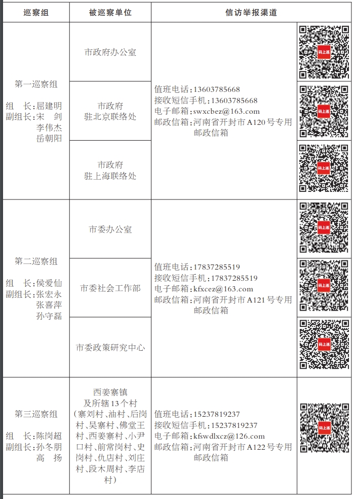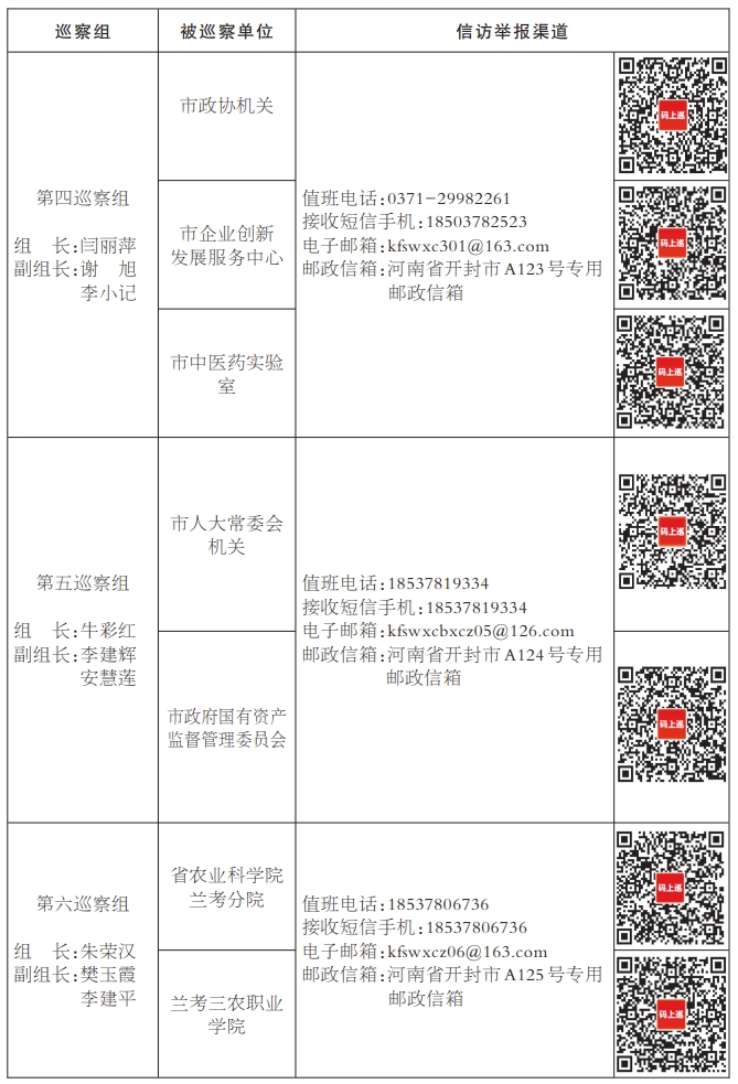 本轮巡察工作时间45天左右。巡察期间,各巡察组设立专门值班电话、接收短信手机、邮政信箱、电子邮箱、“码上巡”等信访举报方式,主要受理反映被巡察党组织领导班子及成员、下一级党组织主要负责人和重点岗位人员问题的来信来电来访,重点是关于违反政治纪律、组织纪律、廉洁纪律、群众纪律、工作纪律和生活纪律等方面的举报和反映。市委巡察组受理信访时间截止到2025年8月24日。(全媒体记者 雷宇)