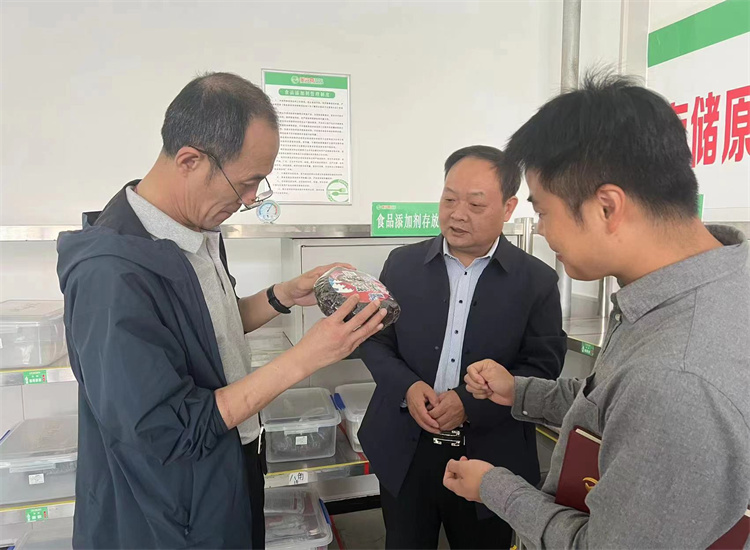 市纪委监委驻市教体局纪检监察组、驻市市场监管局纪检监察组联合驻在单位成立专项督查组,采取“四不两直”的方式深入全市各校园,对学校供餐原材料管控、操作加工规范、“明厨亮灶”工程等方面措施落实情况开展监督,对发现的问题现场反馈,要求学校立整立改,切实保障广大师生饮食安全和营养健康。图为专项督查组在某学校查看储备食材管理情况。(许杰 摄)