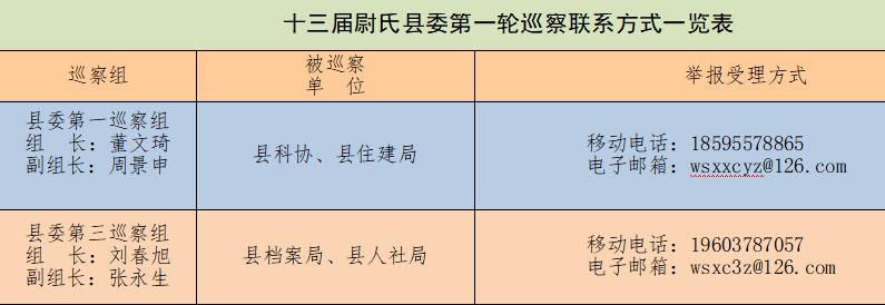 巡察期间,各巡察组均开通举报电话、电子邮箱,在被巡察单位设立举报信箱,接受群众来电来信来访。巡察组受理的时间为工作日上午8:30至下午6:00。受理截止日期为12月23日。对不属于巡察受理范围的事项,按规定转交有关部门处理。(尉氏县委巡察办 王卫河)