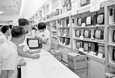 1982年,北京市场售卖电视机。