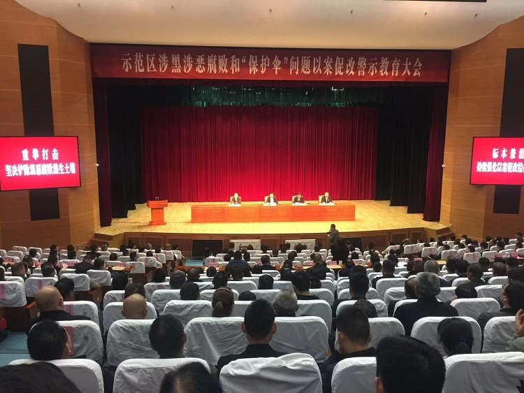 10月17日上午,市城乡一体化示范区召开涉黑涉恶腐败和“保护伞”问题以案促改警示教育大会,通过剖析典型案例,动员教育全区党员干部以案为鉴、守住底线、把好廉洁关。