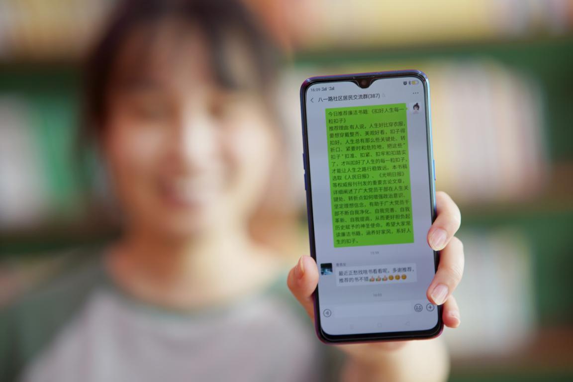 居民在社区微信群内分享廉政书籍