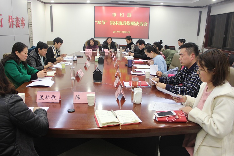 为确保机关全体干部廉洁过元旦、春节,12月29日,漯河市妇联召开“双节”集体廉政提醒谈话会,传达了市委、市纪委关于廉政过节的要求。