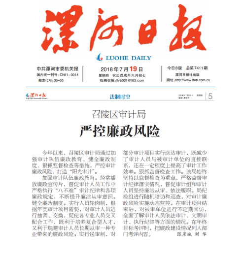 今年以来,召陵区审计局通过加强审计队伍廉政教育、健全廉政制度、狠抓监督检查等措施,严控审计廉政风险,打造“阳光审计”。