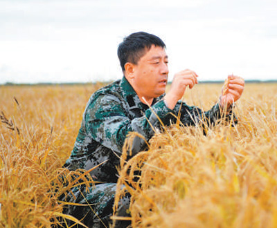 图为贾红涛在村里田间查看水稻长势。(新华社记者 王凯 摄)
